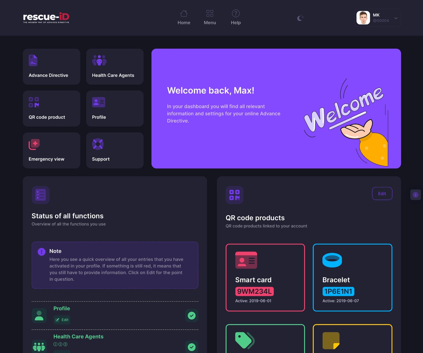Buy a rescue-iD product and we will create your account for you! As soon as you have received your rescue-iD product, you can store your Advance Directive and medical data online.